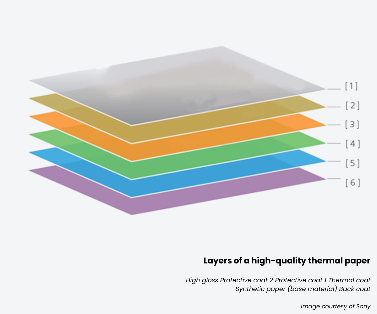High-quality thermal paper has several layers including a glossy surface, protective coats, a thermal coat, the base paper, and a back coat. Each layer has a unique role to play in ensuring the quality and durability of the image.