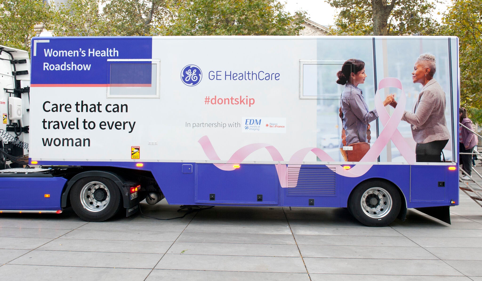 The Mammo Solidaire screening truck will be accessible throughout the Paris region during the month of October, giving free-of-charge mammograms to all women between the ages of 50-74 who have not been screened in over two years. House calls offer breast cancer screening that is even more convenient and accessible to women in a high-risk group—a message the campaign hopes to convey with early detection.