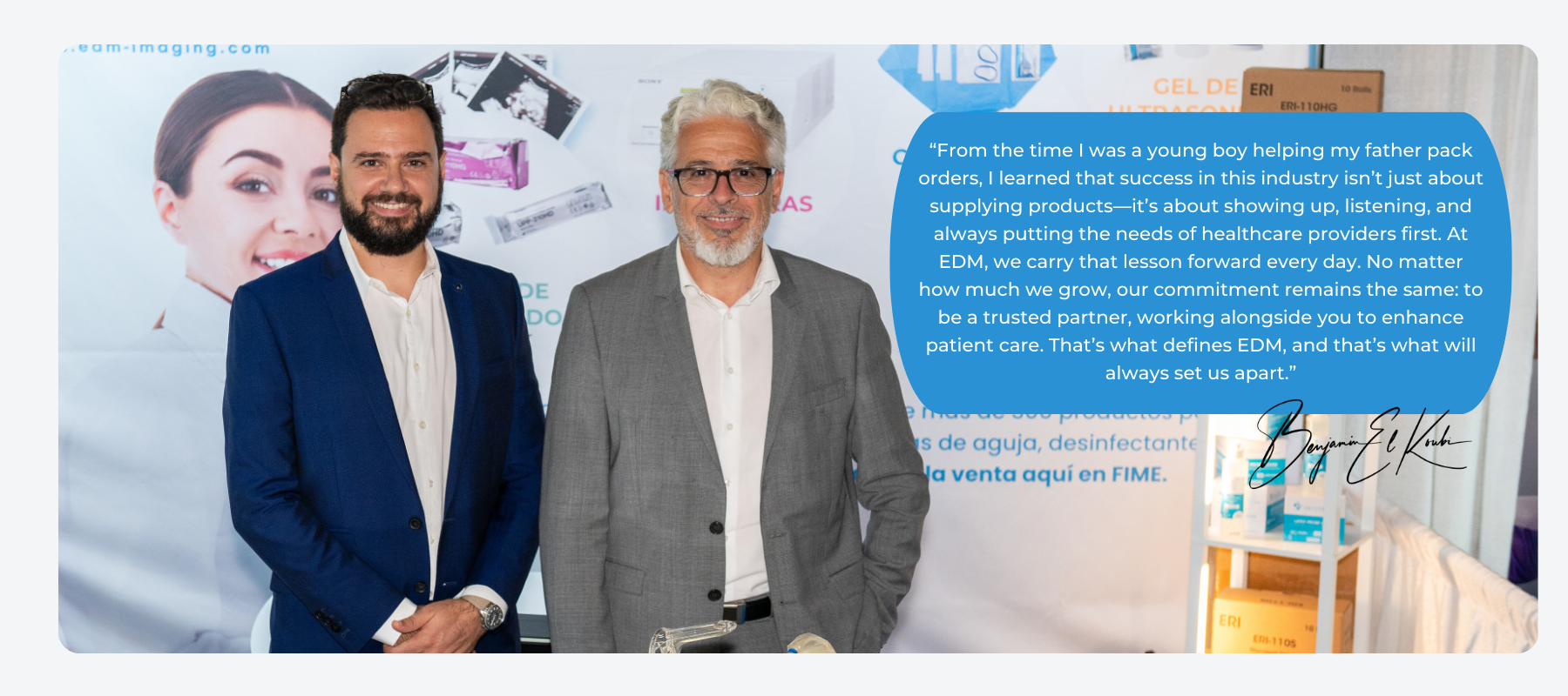 Our mission is to help you enhance patient care, and we recognize that having the right supplies, at the right time, with the right support plays a crucial role in that. Unlike many companies where leadership feels distant, our founders remain actively engaged—whether it’s working alongside our team in the warehouse, having direct conversations with clients, or meeting healthcare professionals at industry trade shows. Their hands-on approach reflects EDM’s core values of reliability, attentiveness, and trust.